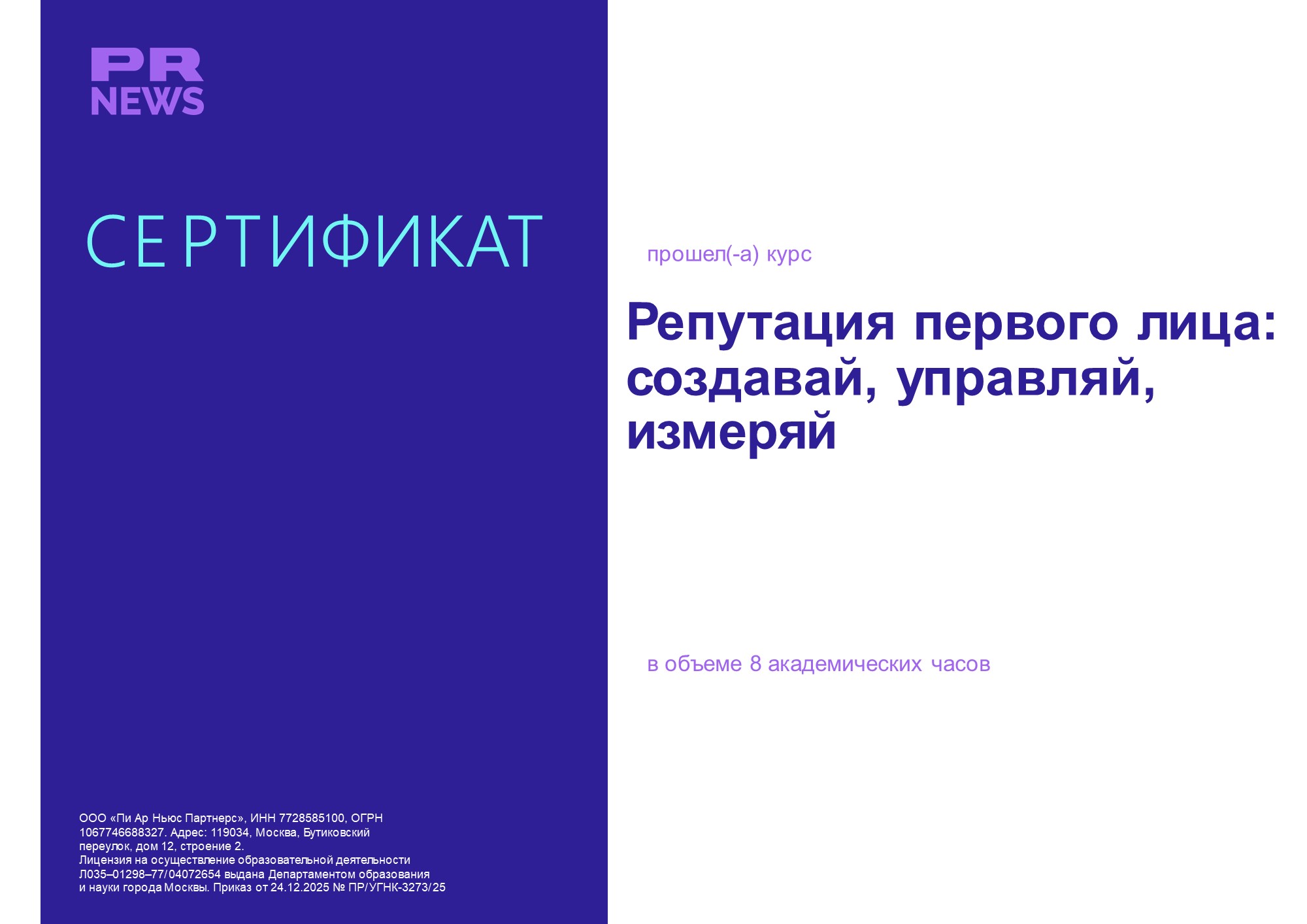 Курс предлагает комплексный систематизированный подход к созданию, изучению и измерению репутации руководителя и персонального бренда в МЕДИА.