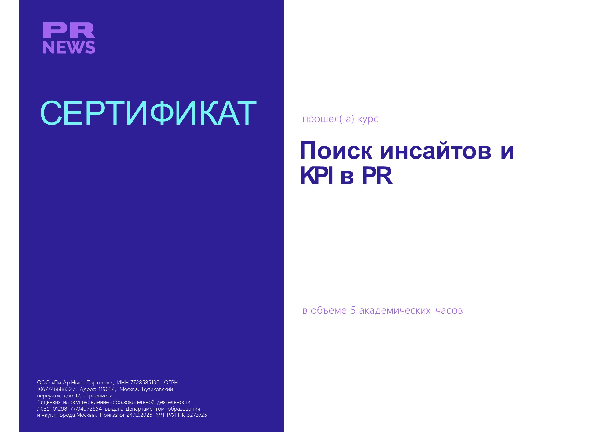 Курс "Поиск инсайтов и KPI в PR" оказался для меня профессиональной гигиеной. Приятно было облагородить свой понятийный аппарат и открыть неопробованные метрики! Теперь я вдохновился на изучение "PR-математики" — спасибо команде PR News за расширение горизонтов!